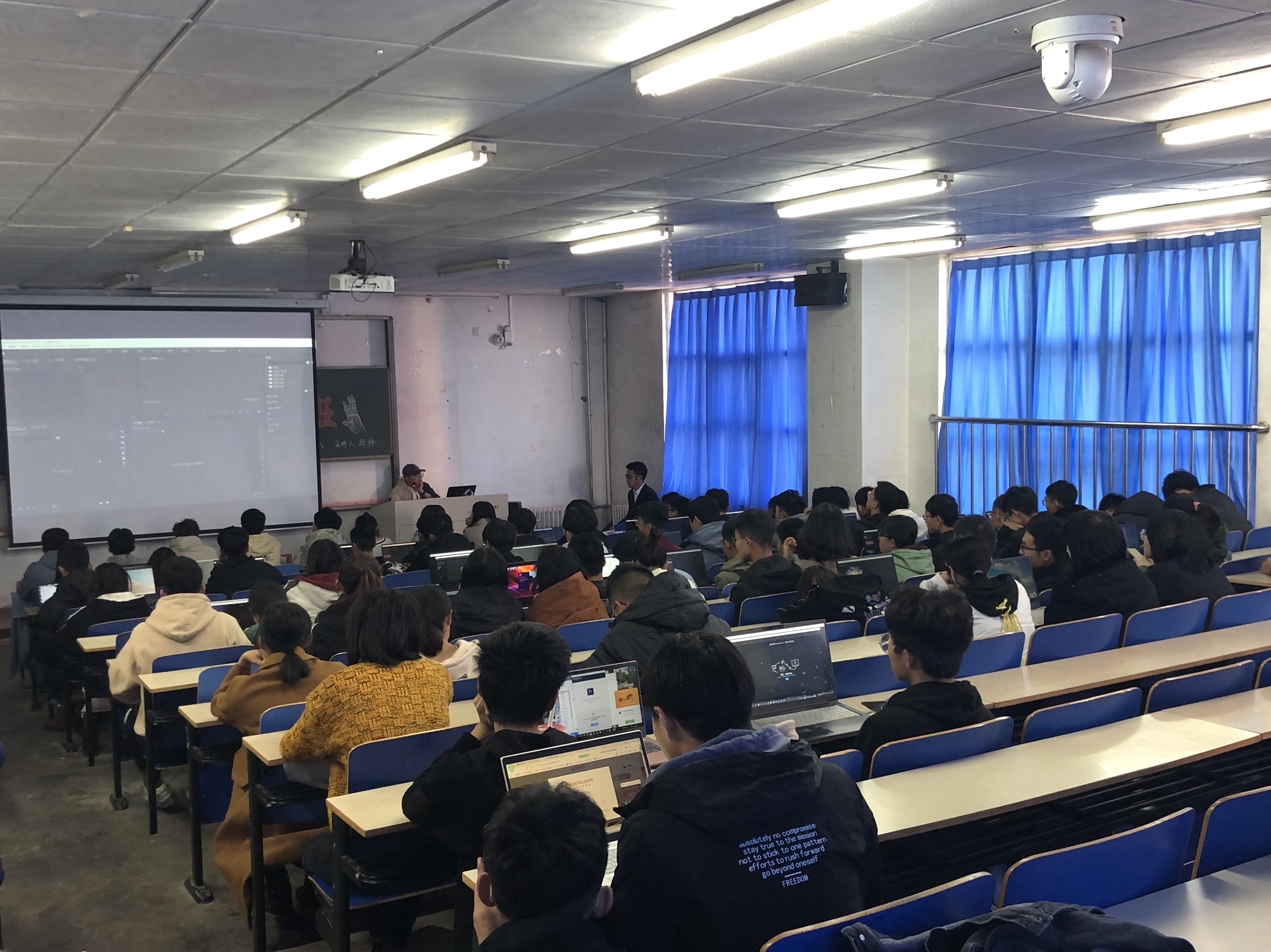 此次培训由马帅学长讲解pr, 随着主持人介绍的逐步推进,很快马帅学长带领我们一步步地进入pr的世界。最初,主讲人从生活中常见的软件应用出发,语言幽默风趣,吸引了同学们的兴趣。随后主讲人亲身示范,分别经过新建项目,剪辑视频,视频导入等流程渐入佳境,使培训人员从基础理论入手,打好了实践操作的坚实基础。教学结束,在场同学都受益匪浅。